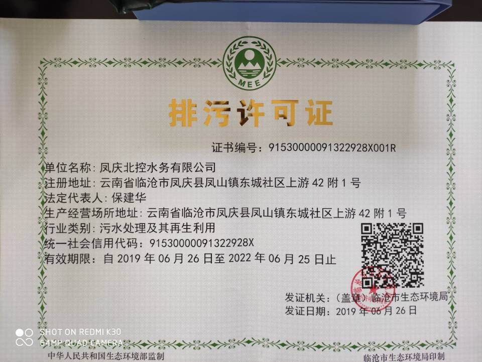 凤庆北控水务有限公司环境信息公开表